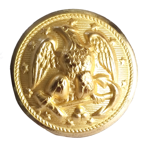 The Navy button design consists of an eagle rising, with its wings down.  The left foot is on the shank, the right foot on the stock of a plain Anchor, laid horizontally, and the Eagle's head faces its right.  The whole is surrounded by 13 five-pointed stars and a rope.